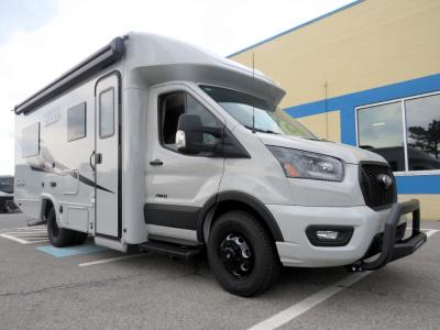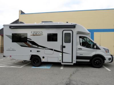 The Cross Trail EV Class C gas motorhomes by Coachmen offer livable and storage friendly coaches with an interior/exterior Smart TV, extra large kitchen counters, and large sliding tinted windows. Also included is the Renogy Empowered state-of-the-art hybrid electrical system designed to operate every coach function from battery power, including the A/C, and is convenient for operating systems while traveling without the use of a generator. Each has a fuel-friendly Ford transit chassis, Azdel composite vacuum bonded sidewalls, and a CrossFlex roof membrane, providing more puncture resistance. And the available all-wheel drive means you can go off the beaten path if you choose that option!