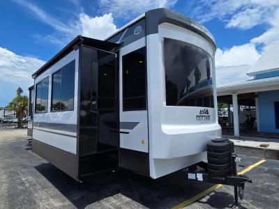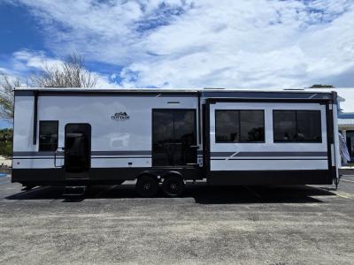 Sleeps 7 Slides 3 Length 40 ft 6 in Ext Width 8 ft 5 in Ext Height 12 ft 10 in Hitch Weight 1696 lbs GVWR 13696 lbs Dry Weight 11775 lbs Cargo Capacity 1921 lbs Fresh Water Capacity 57 gals Grey Water Capacity 82 gals Black Water Capacity 41 gals Available Beds King Refrigerator Type 12V Glass Front with Icemaker Refrigerator Size 18 cu ft Cooktop Burners 3 Shower Size 48" x 30" Number of Awnings 1 Axle Weight 6000 lbs Water Heater Capacity 20 gal Water Heater Type Electric AC BTU 30000 btu TV Info LR 50" Smart TV, BR 32" TV Awning Info 18' Electric w/LED Night Lighting Axle Count 2 Washer/Dryer Available Yes Shower Type Shower w/Seat Similar Destination Trailer Floorplans