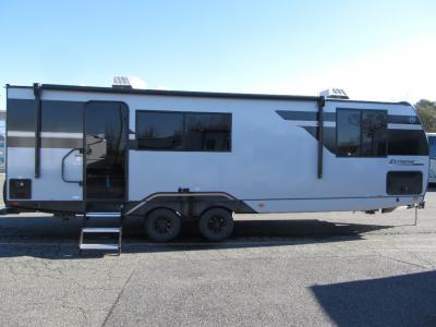 Sleeps 4 Slides 1 Length 32 ft 6 in Ext Width 8 ft Ext Height 11 ft 2 in Hitch Weight 955 lbs Dry Weight 6758 lbs Cargo Capacity 2997 lbs Fresh Water Capacity 38 gals Grey Water Capacity 70 gals Black Water Capacity 30 gals Available Beds Custom King Refrigerator Type 12V Refrigerator Size 10.7 cu ft Cooktop Burners 3 Number of Awnings 1 Water Heater Type On Demand Tankless AC BTU 31500 btu Awning Info 18' w/LED Lights Axle Count 2 Washer/Dryer Available Yes Shower Type Walk-In Shower Similar Travel Trailer Floorplans