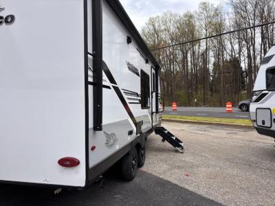 You will love the seamless countertops throughout, along with the stylish interior and the new InVision appliance package. A 13,500 BTU roof.mounted Quiet Series A/C will keep you comfortable, while the MaxxAir vent fan in bathroom and living room allows for even more comfort, and the on-demand water heater means everyone can freshen up before bed. Each model is constructed with a Magnum Truss roof system and Stronghold VBL walls with double-sided Azdel composite, so you can plan to enjoy your Jay Feather for years to come.