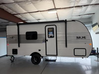 This travel trailer includes everything you need for fun trips at the lake. When you arrive at the campground, you can unload the exterior storage, then put out the 10' power awning. The booth dinette inside will provide a place to dine together, and the full rear bath with a shower will make it easier than ever to clean up after a day of hiking. A front RV queen bed will provide a great night's rest, and the overhead shelf will be perfect for books or personal belongings.