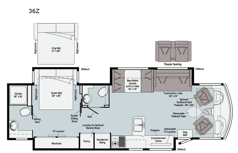 *All RV prices exclude tax, title, registration and fees, including documentary service fees. All payments are with approved credit through dealer lending source. Advertised monthly payment is based on 20% cash down, plus tax, title, registration and fees, at 8.49% APR for 96 months on finance amounts under $10K, at 8.49% APR for 144 months on finance amounts from $10K to $25K, at 8.49% APR for 180 months on finance amounts from $25K to $50K, and at 8.49% APR for 240 months on amounts over $50K.